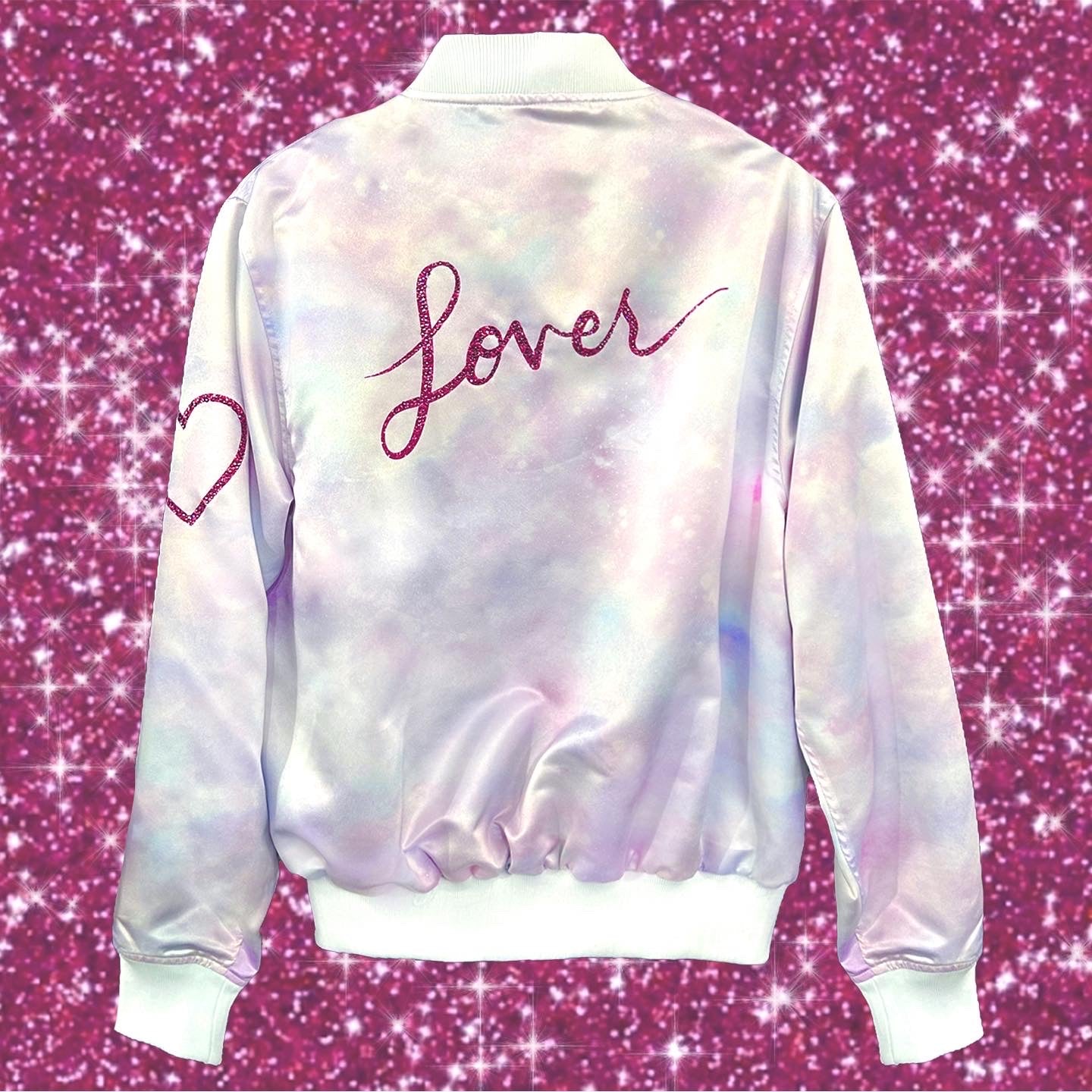 Bomber Jacket inspirada con el logo de Lover, por TS. El logo y corazón en el brazo llevan aplicaciones de cristales que brillan increíble. ✨