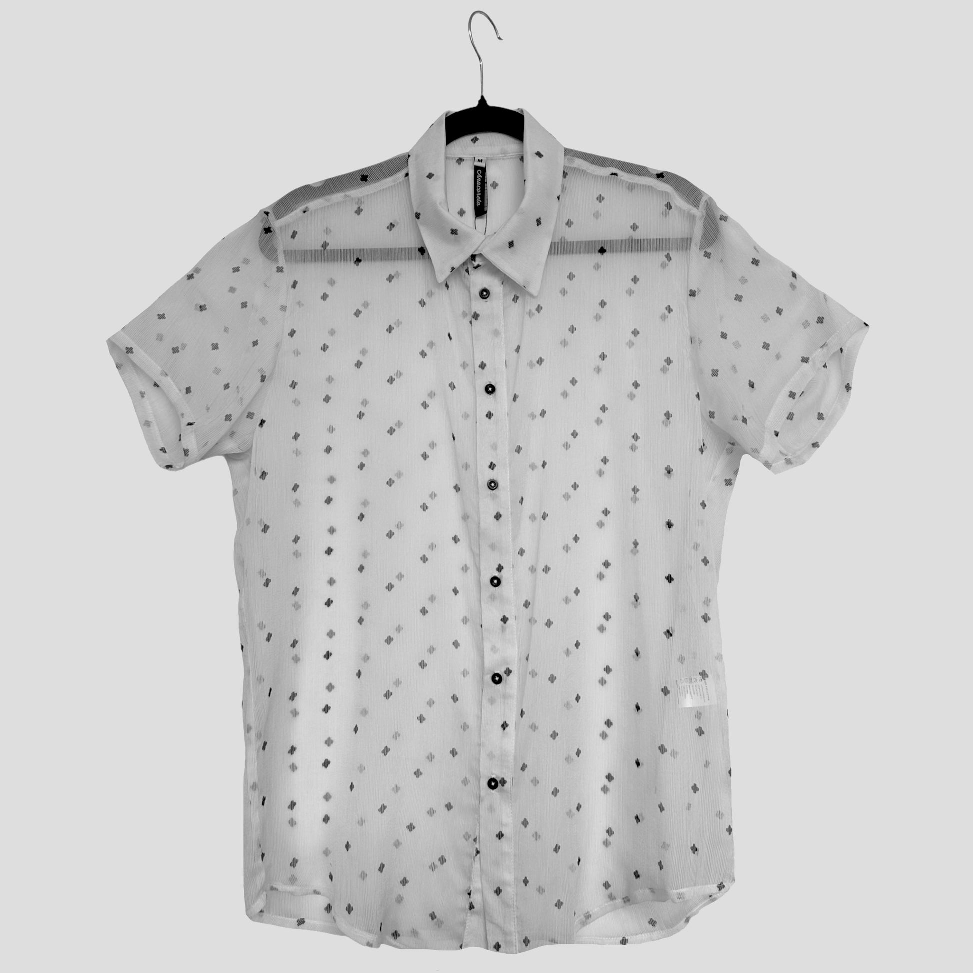 Camisa de gasa corrugada con motivos de puntos. Tejido casi transparente.