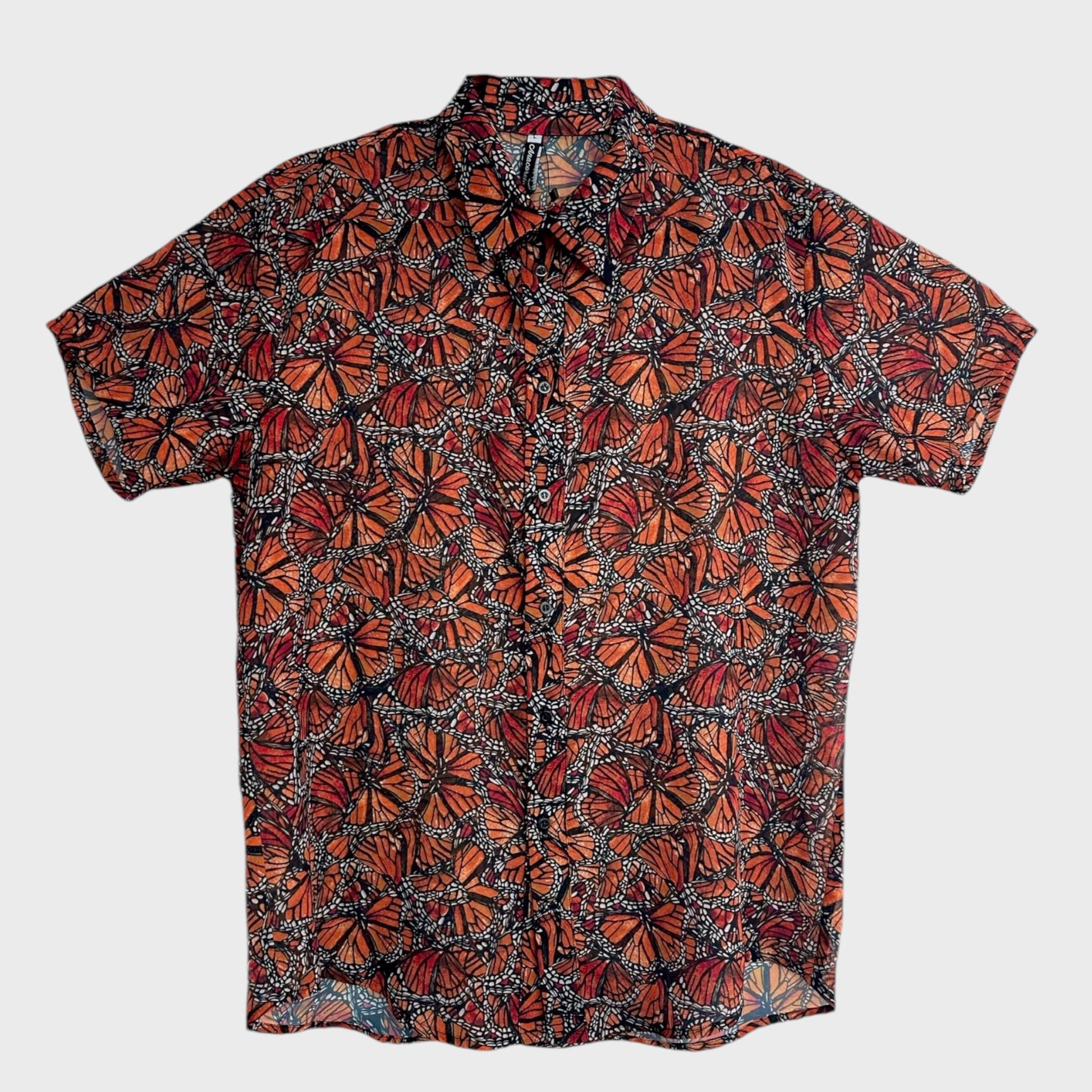 Camisa de gasa semi-transparente con estampado de mariposas.
