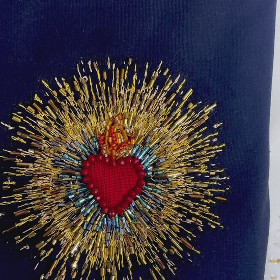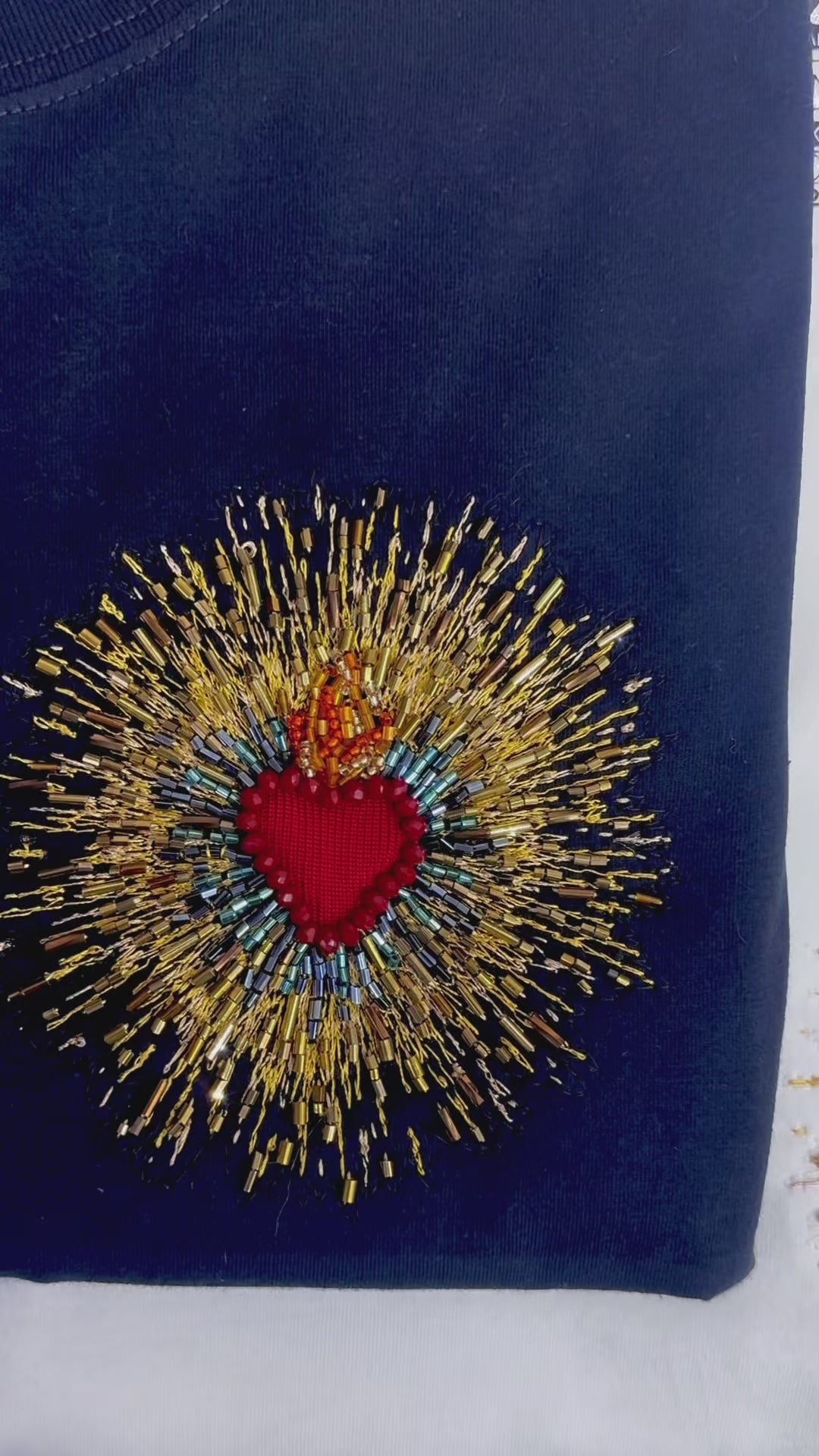 Tee de algodón peinado 100% con bordado a mano de pedrería. Cada bordado es único.