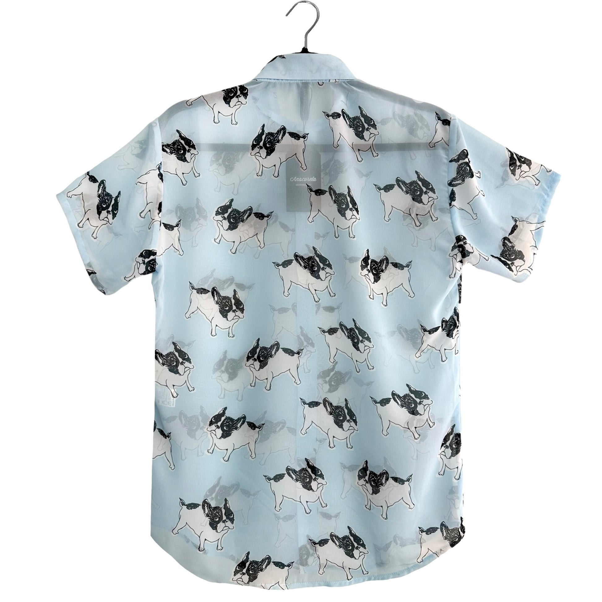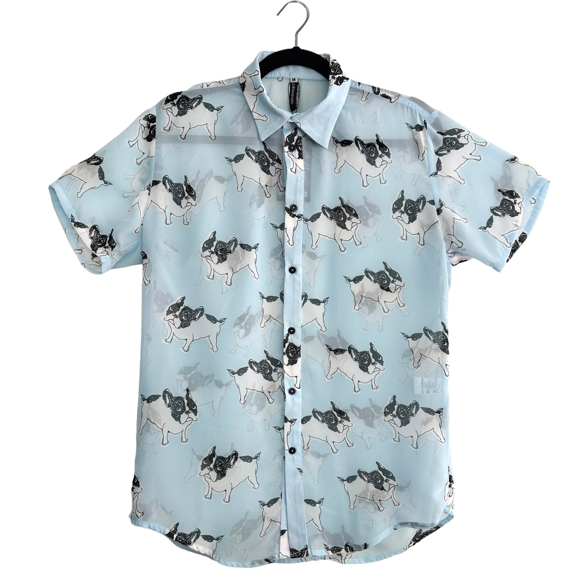 Camisa con estampado de perritos en gasa semi-transparente.
