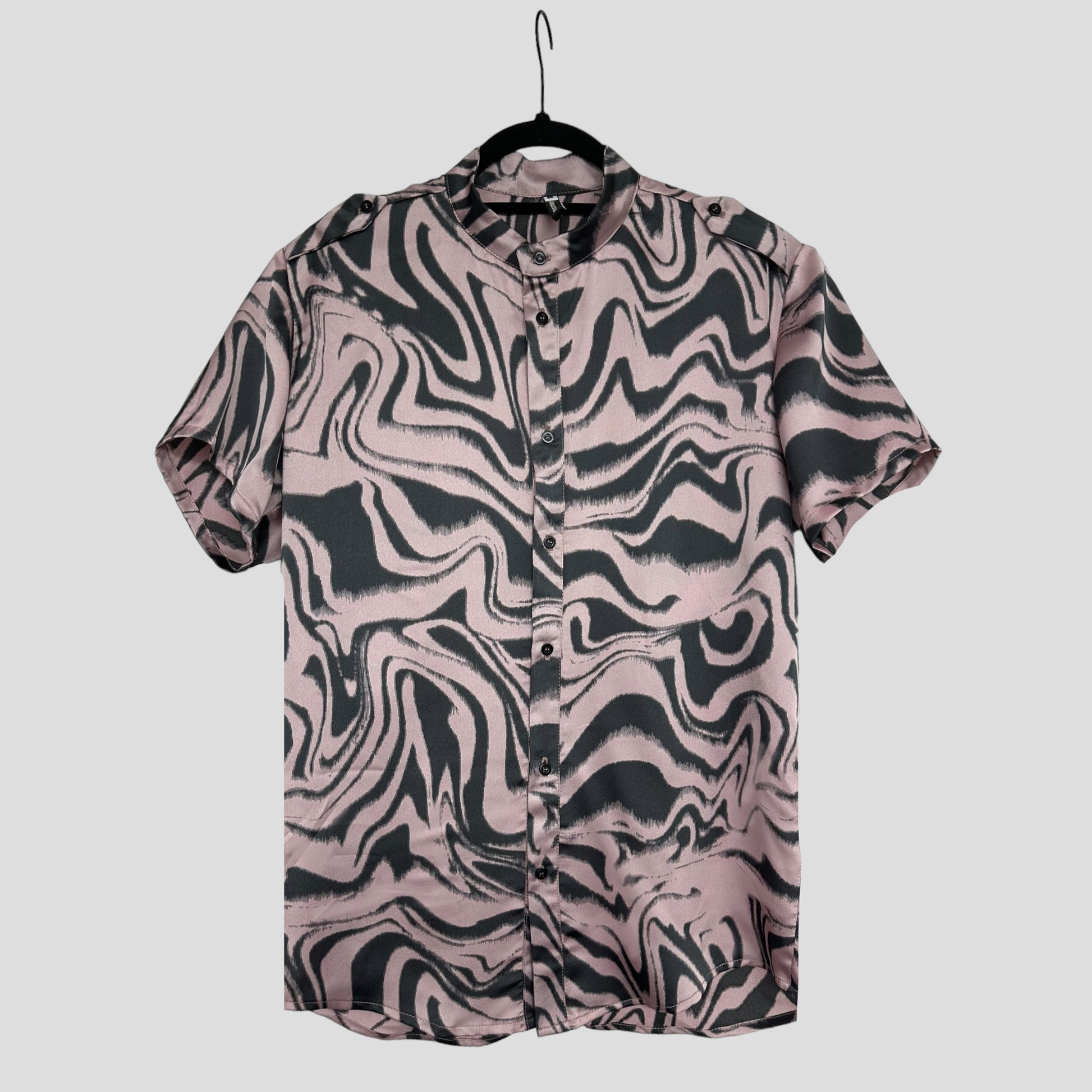 Camisa con estampado rosa y gris. Tejido tipo satín.