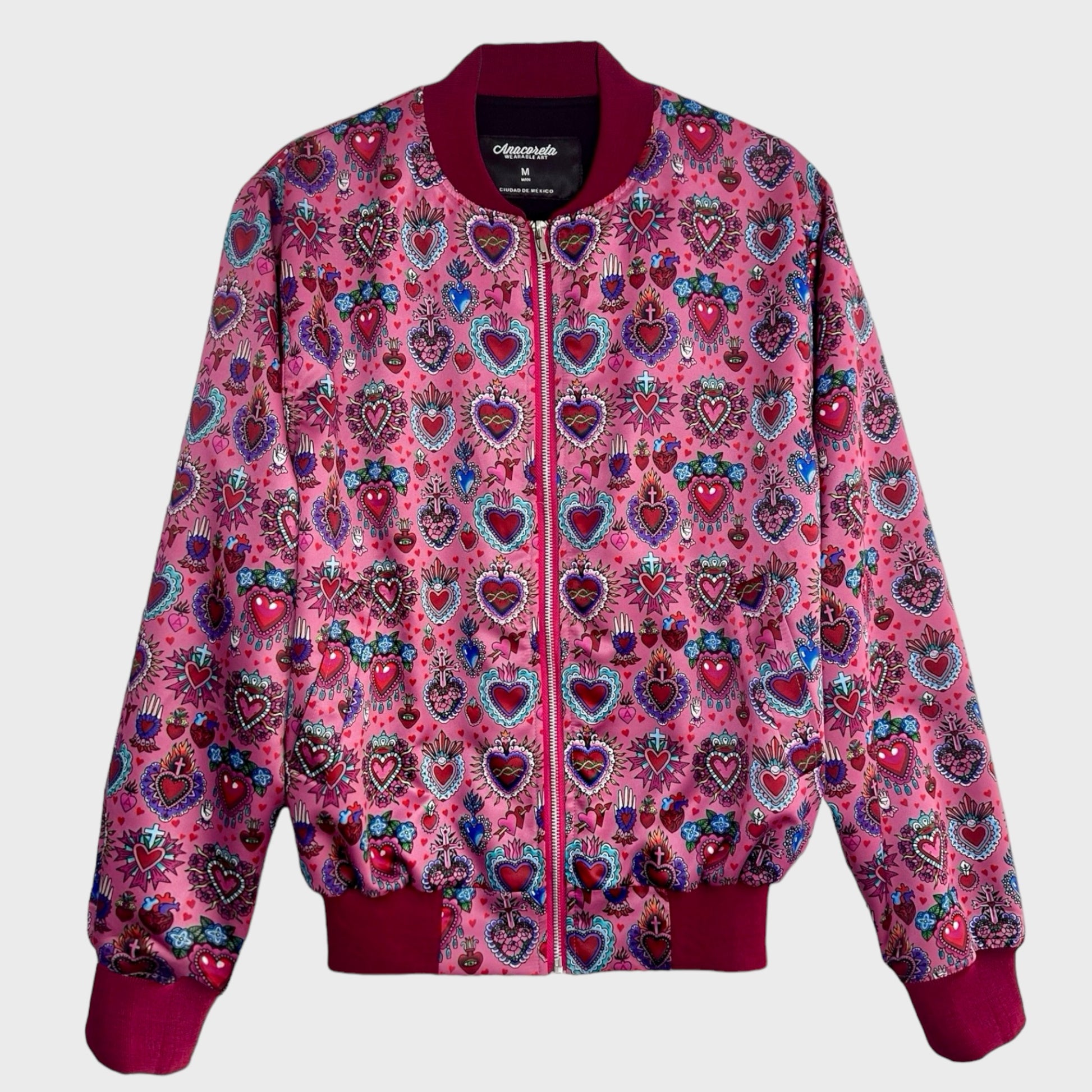 Bomber Jacket inspirada en los milagros mexicanos que representan agradecimiento y protección.