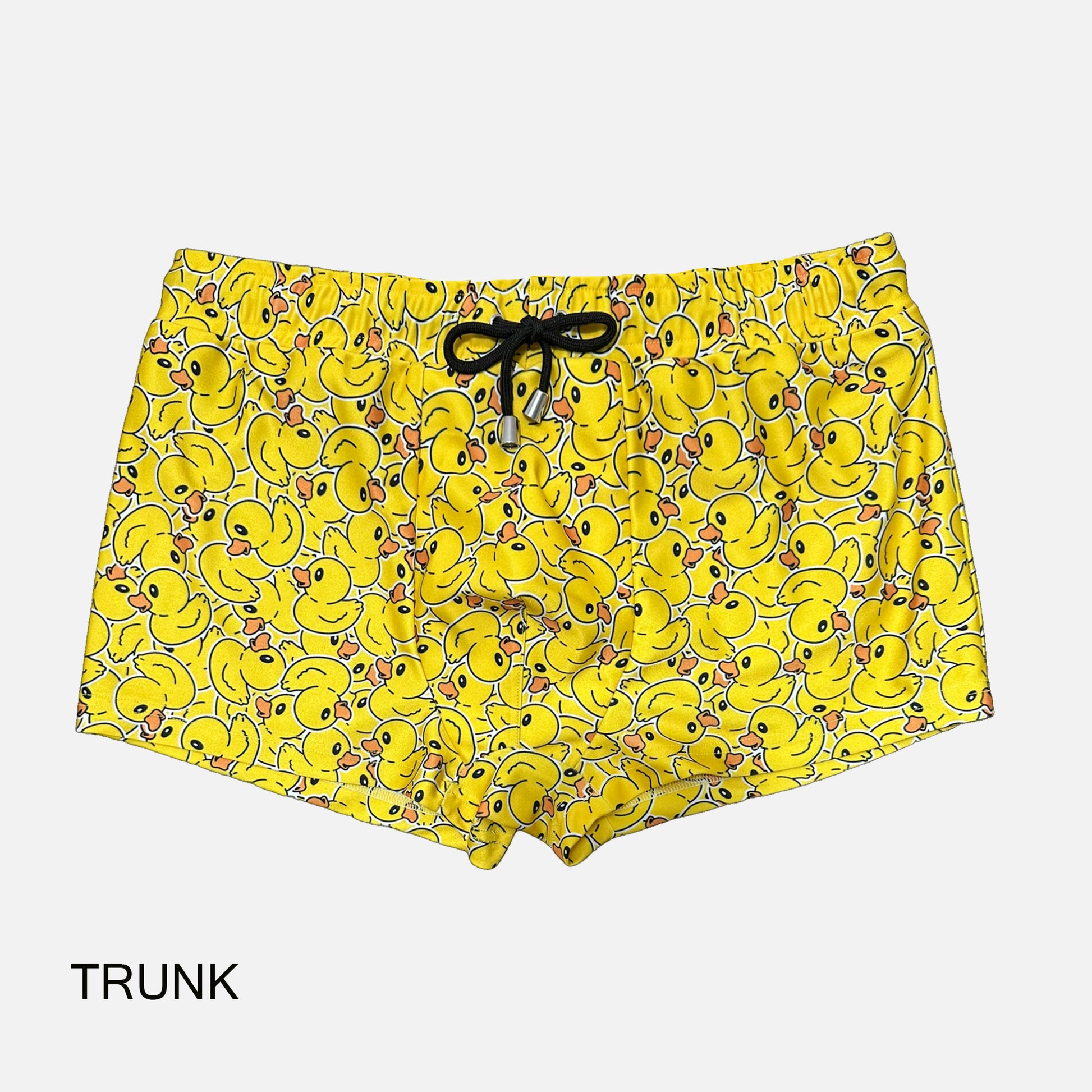 Bañador para caballero estampado en suave y cómodo textil elástico que se ajusta al cuerpo.