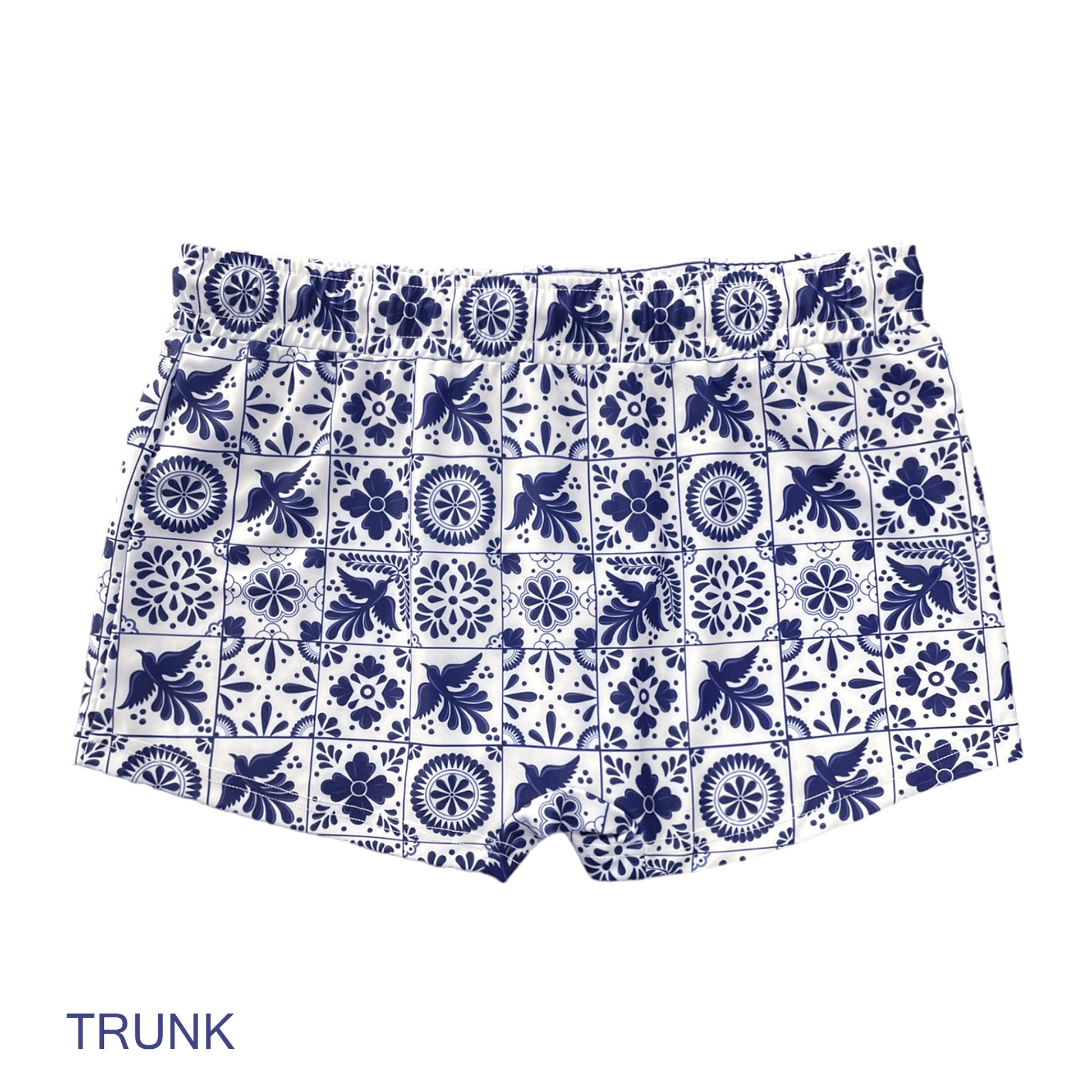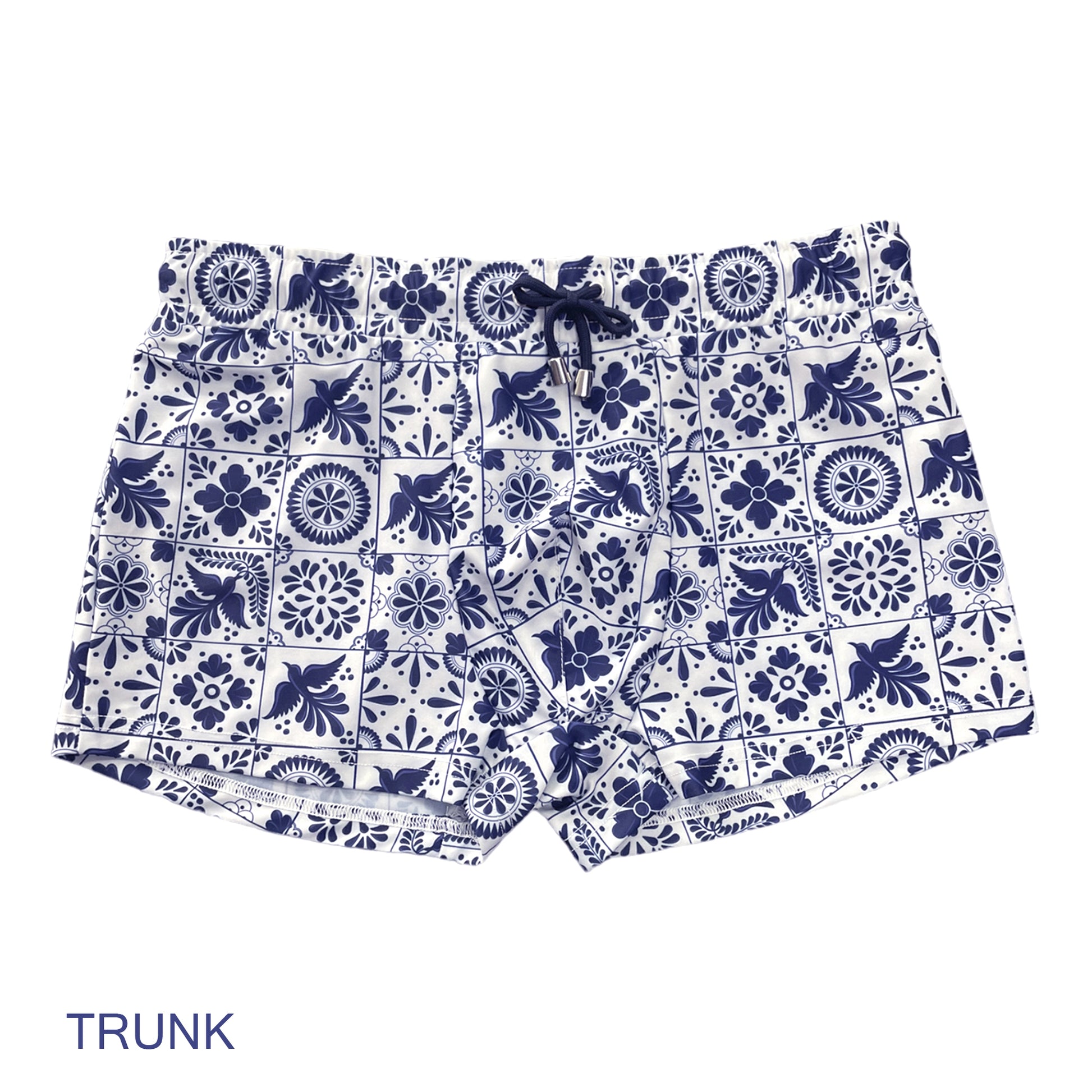 Bañador para caballero estampado en suave y cómodo textil elástico que se ajusta al cuerpo.