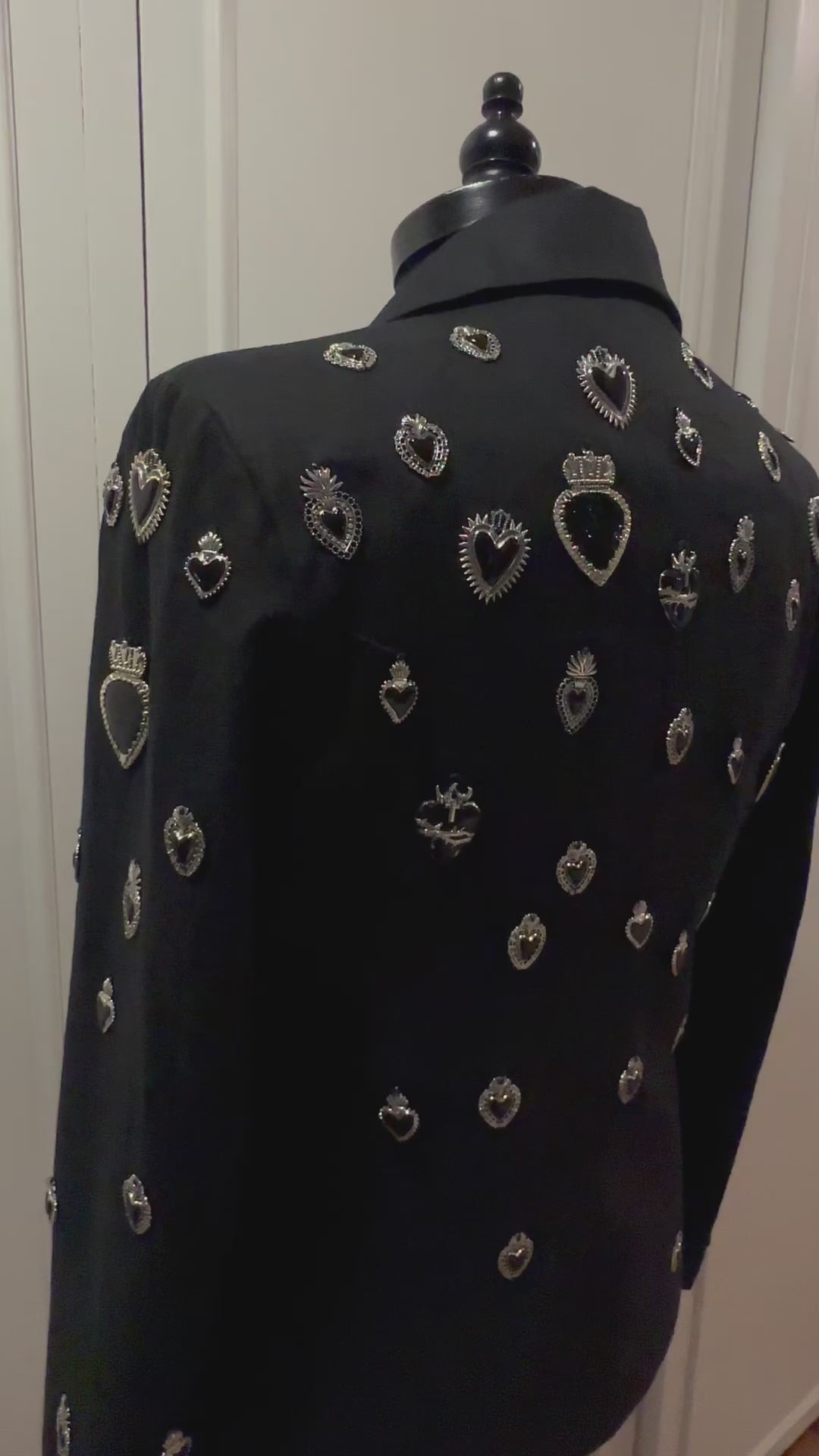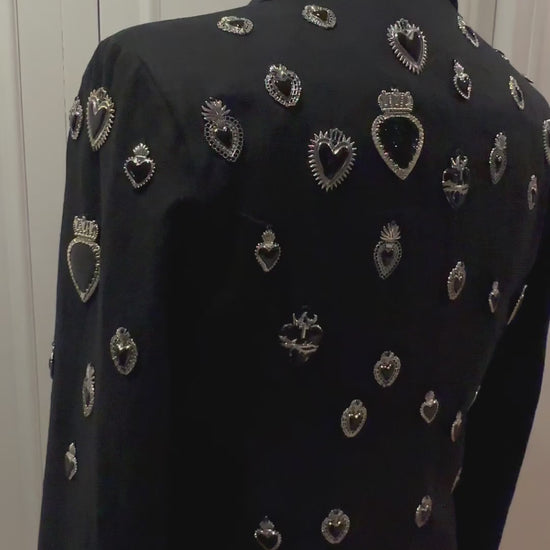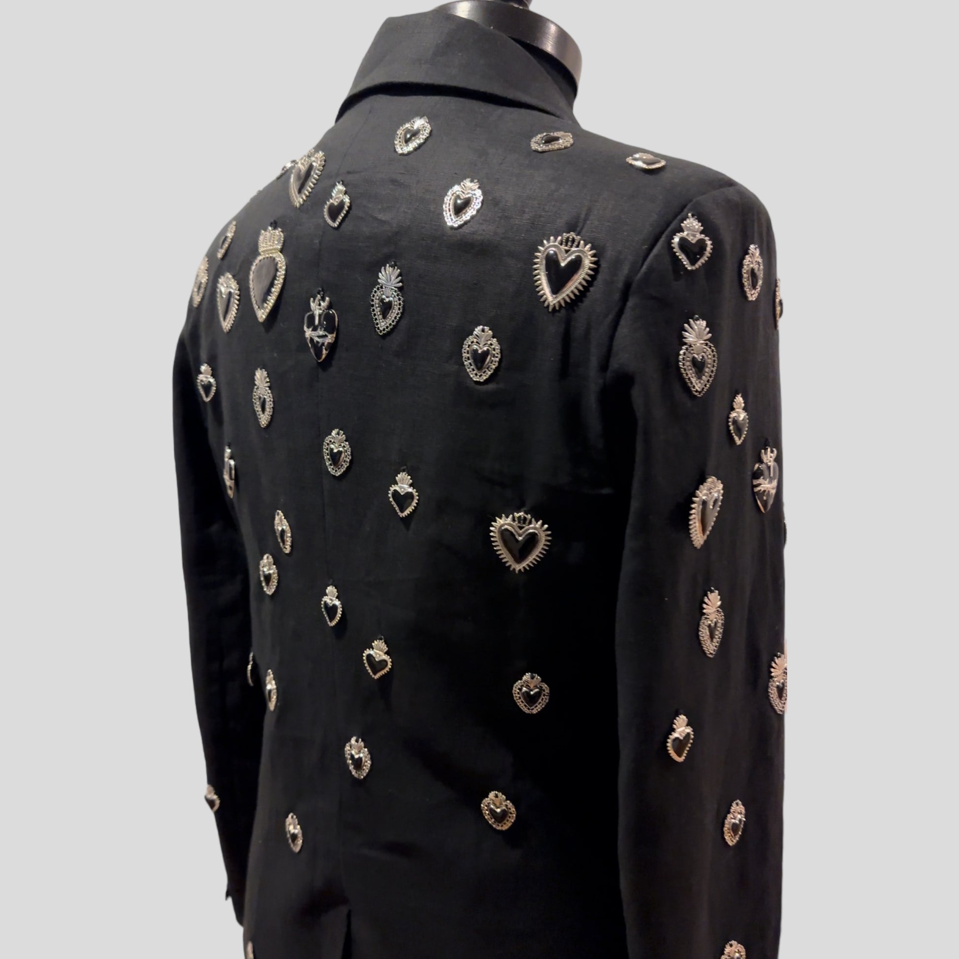 Blazer en fit de caballero con corazones estilo mexicano bordados a mano. Sobre lino 100% (escríbenos para personalizar el material o color)