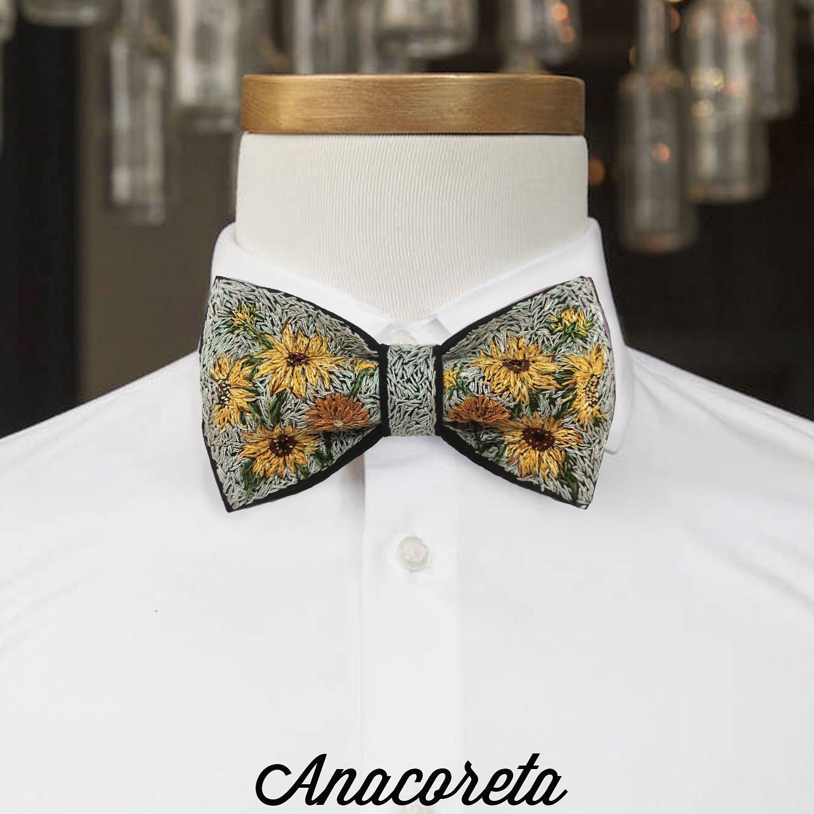 Bowtie bordado a mano inspirado en los Girasoles de Van Gogh.