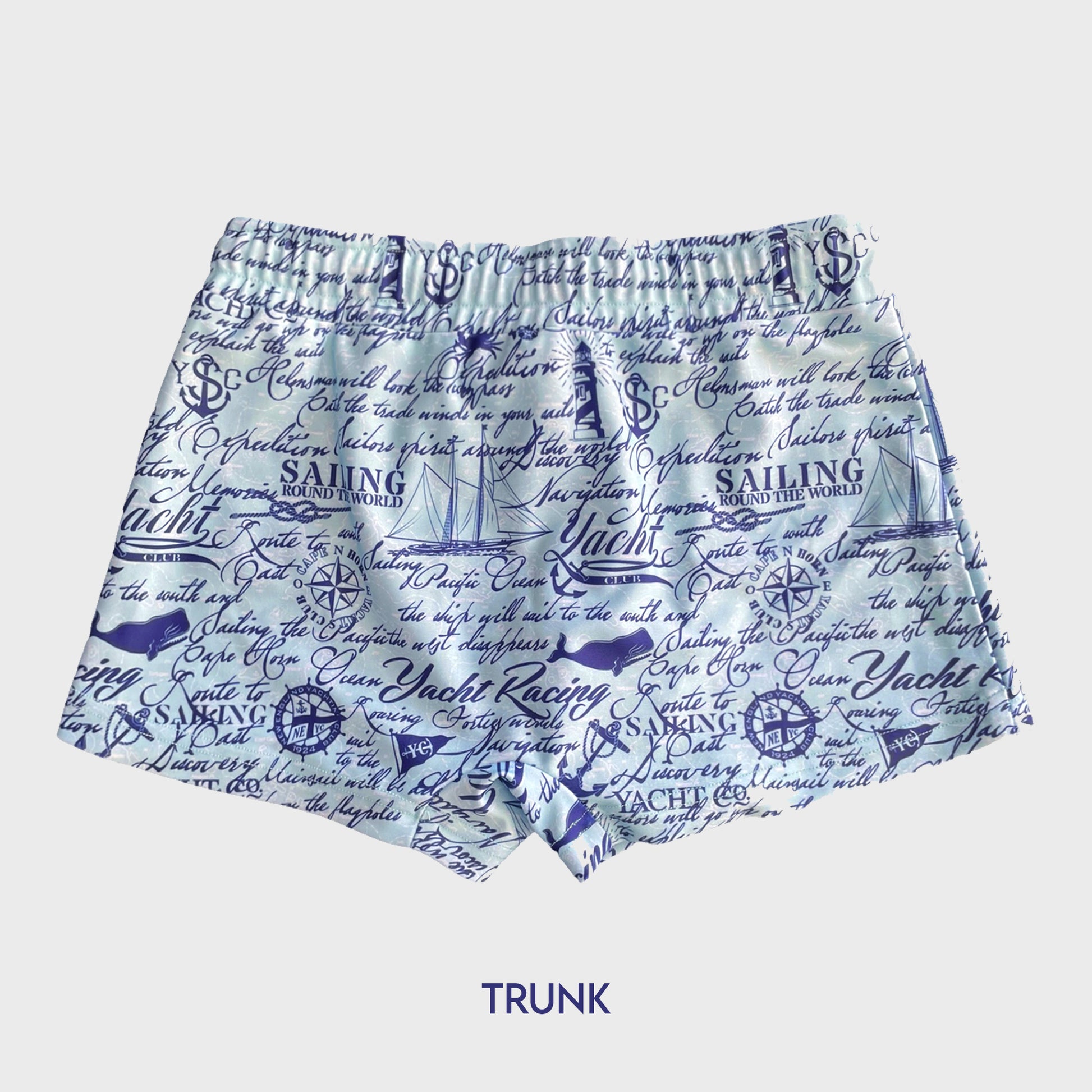 Bañador para caballero estampado en suave y cómodo textil elástico que se ajusta al cuerpo.