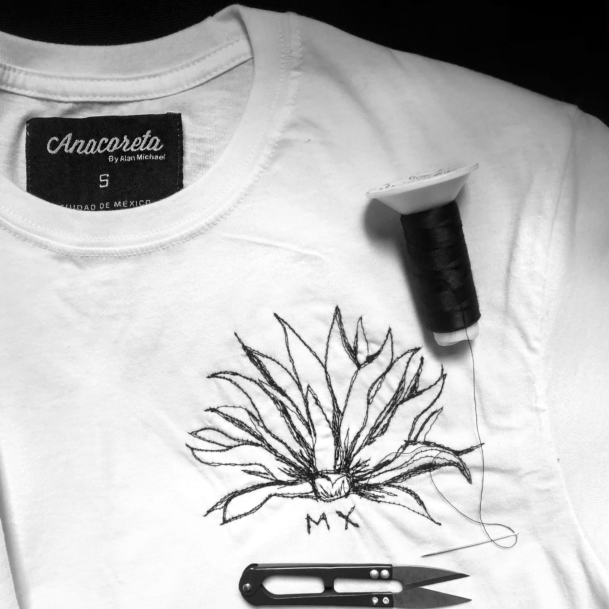 Tee bordada a mano conmigo motivos de agave. 100% Algodón peinado.