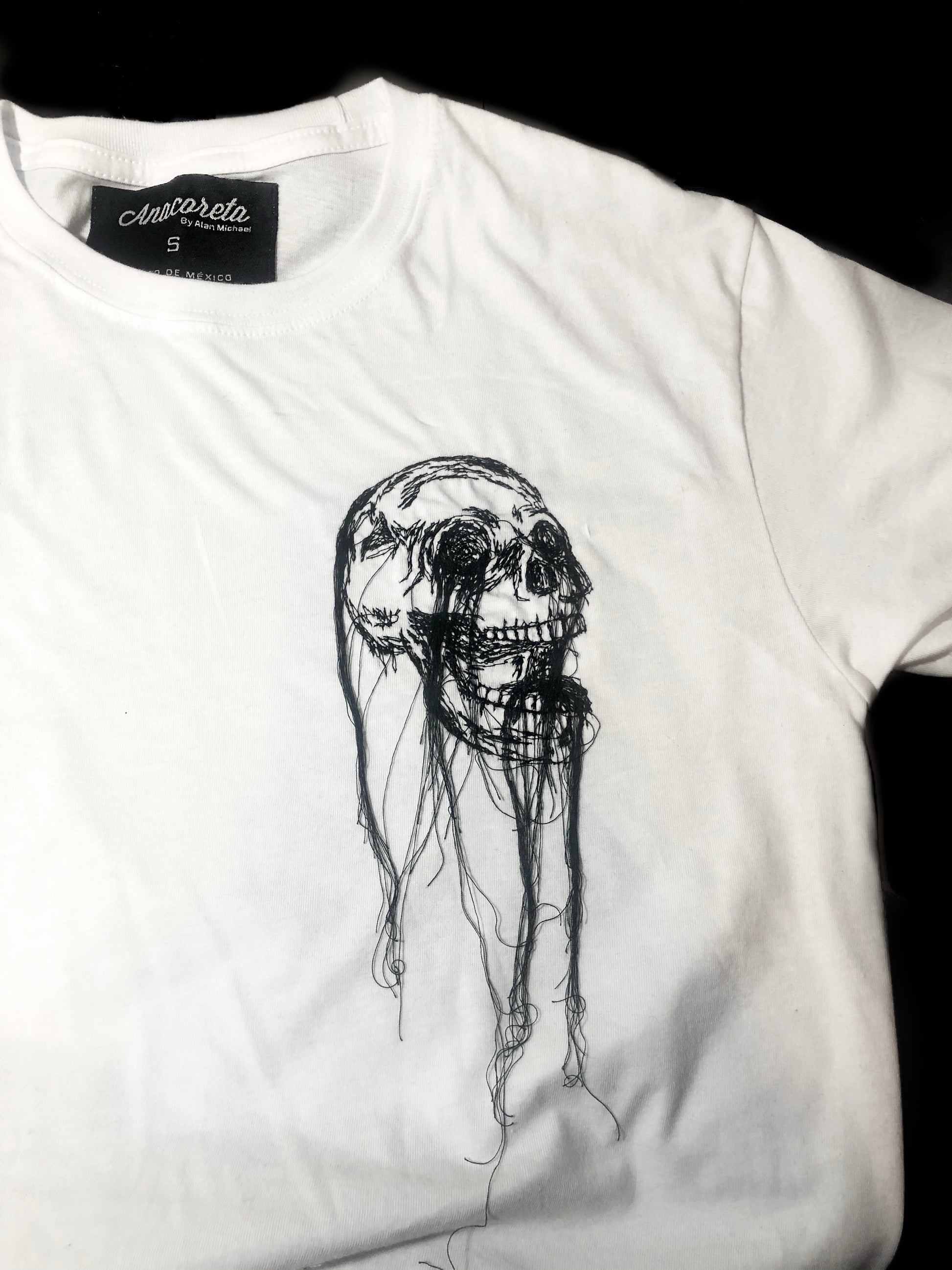 Bordado manual sobre textil de 100% algodón peinado. Al crearse de forma manual cada bordado, cada pieza tiene un resultado único, pero siempre cuidando la calidad y durabilidad de la prenda.