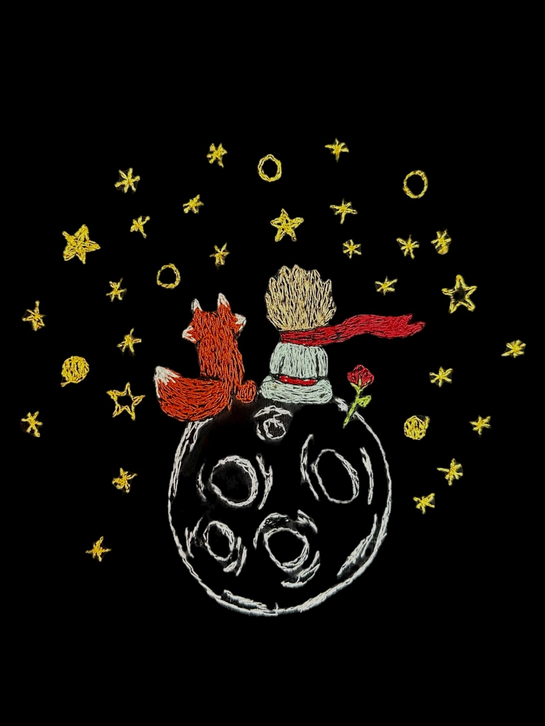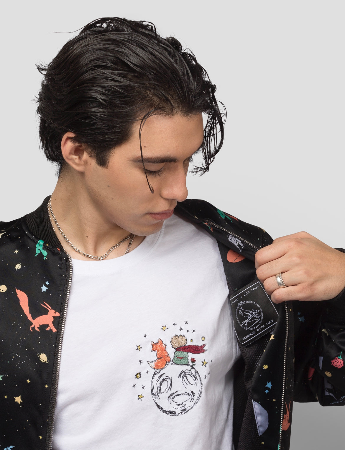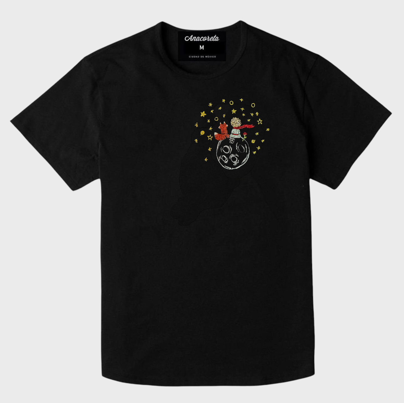 Tee bordada a mano conmigo motivos de El Principito. 100% Algodón peinado.