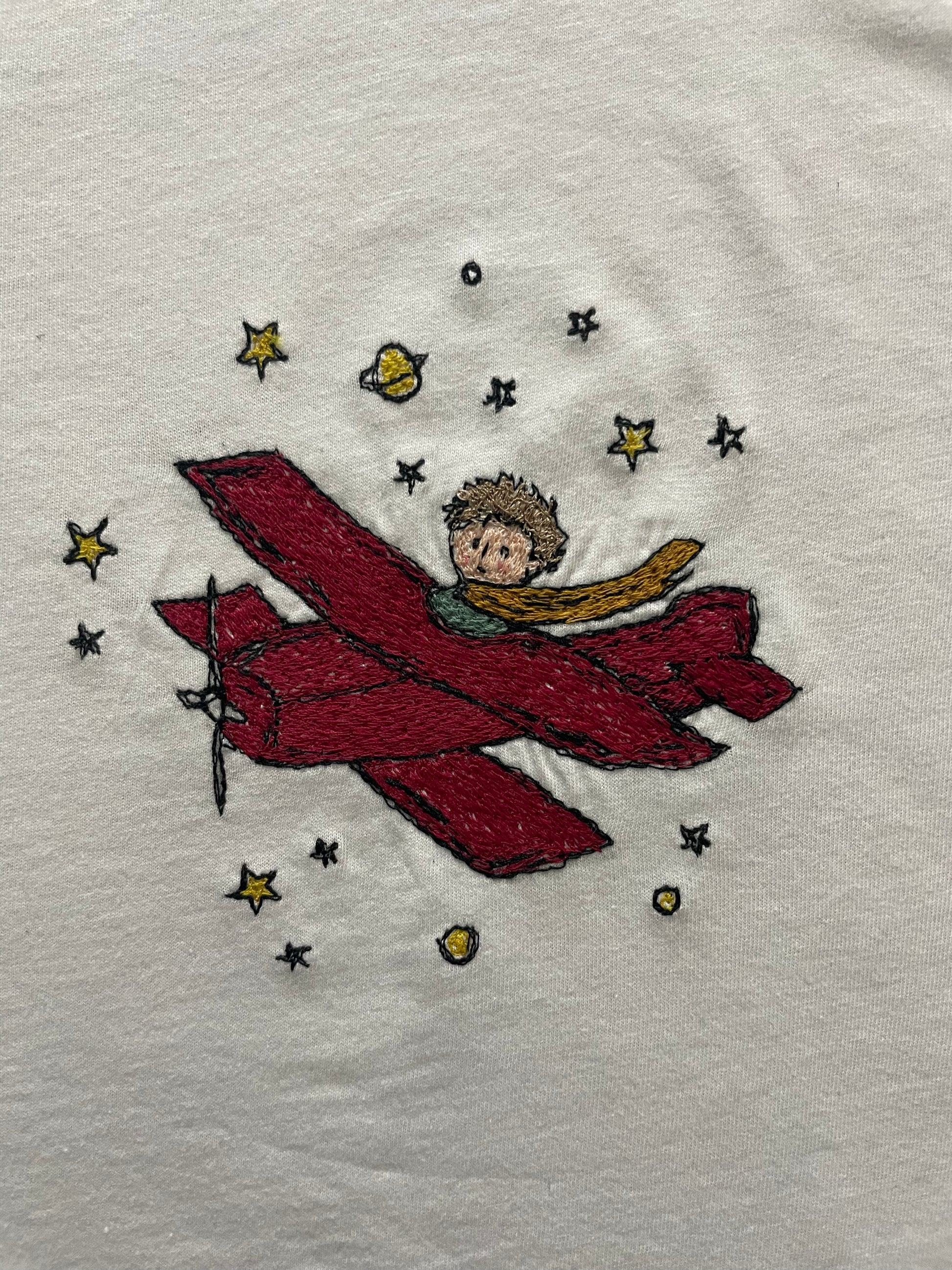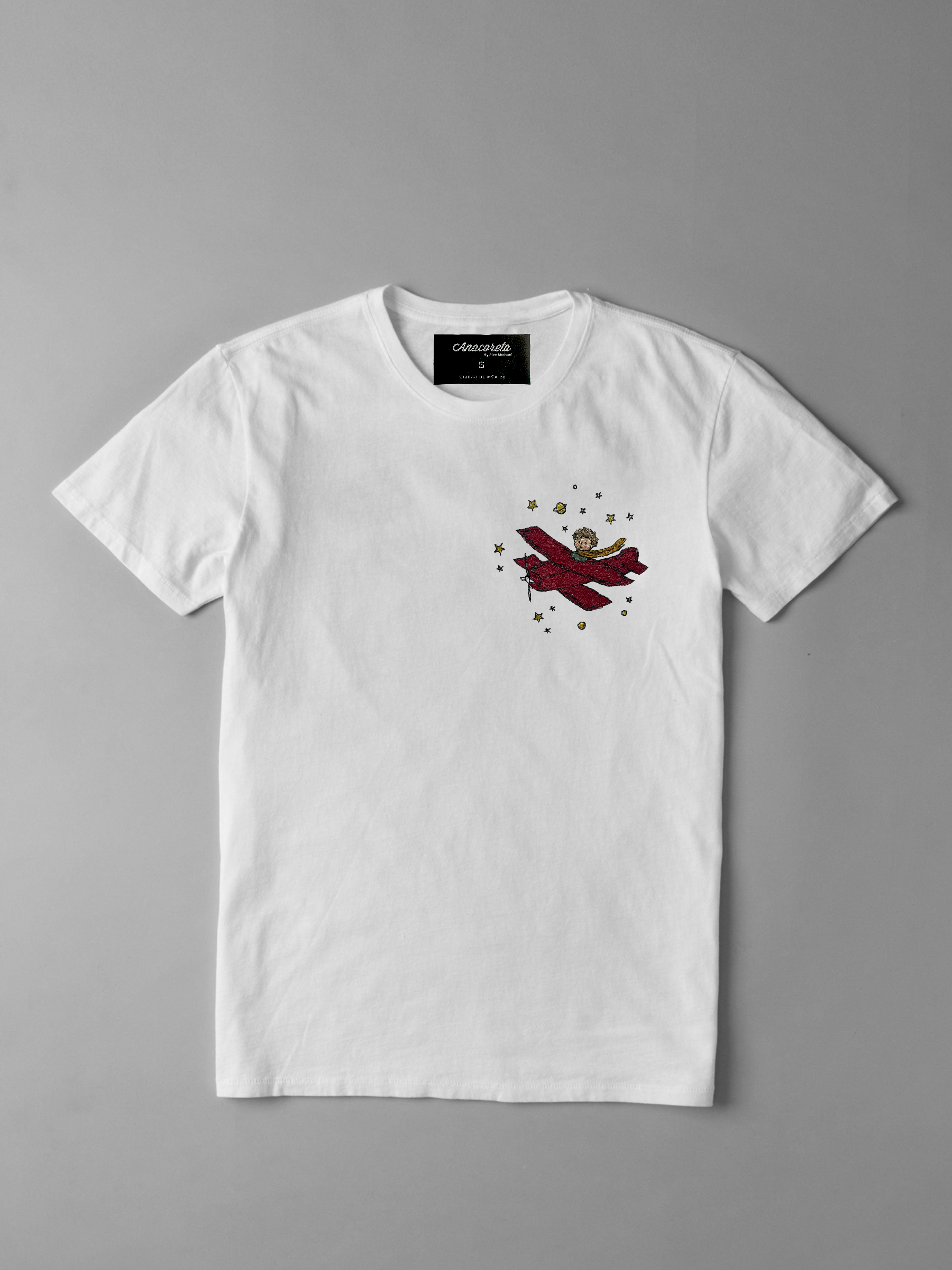 Tee bordada a mano conmigo motivos de El Principito. 100% Algodón peinado.