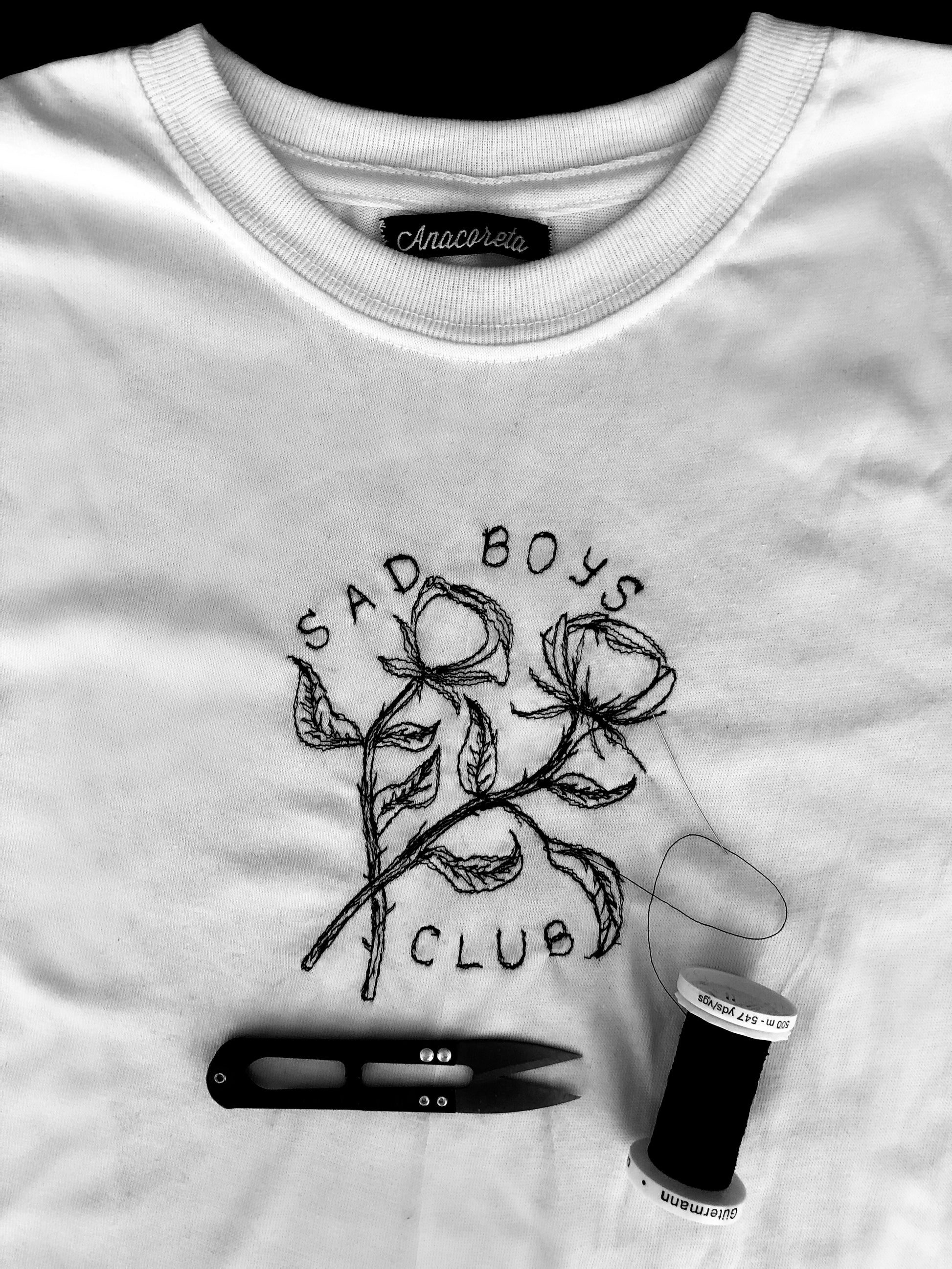 Tee bordada a mano 100% algodón peinado. El proceso artesanal para crear esta prenda hace que ninguna sea idéntica a otra, pero siempre bajo un estricto control de calidad.